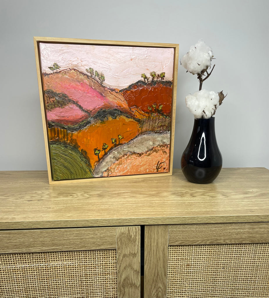 Acrylic, mixed media on canvas, with lots of texture. 33cm x 33cm - framed.