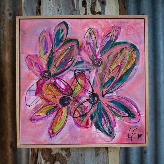Acrylic, mixed media on canvas.  53cm x 53cm - framed.