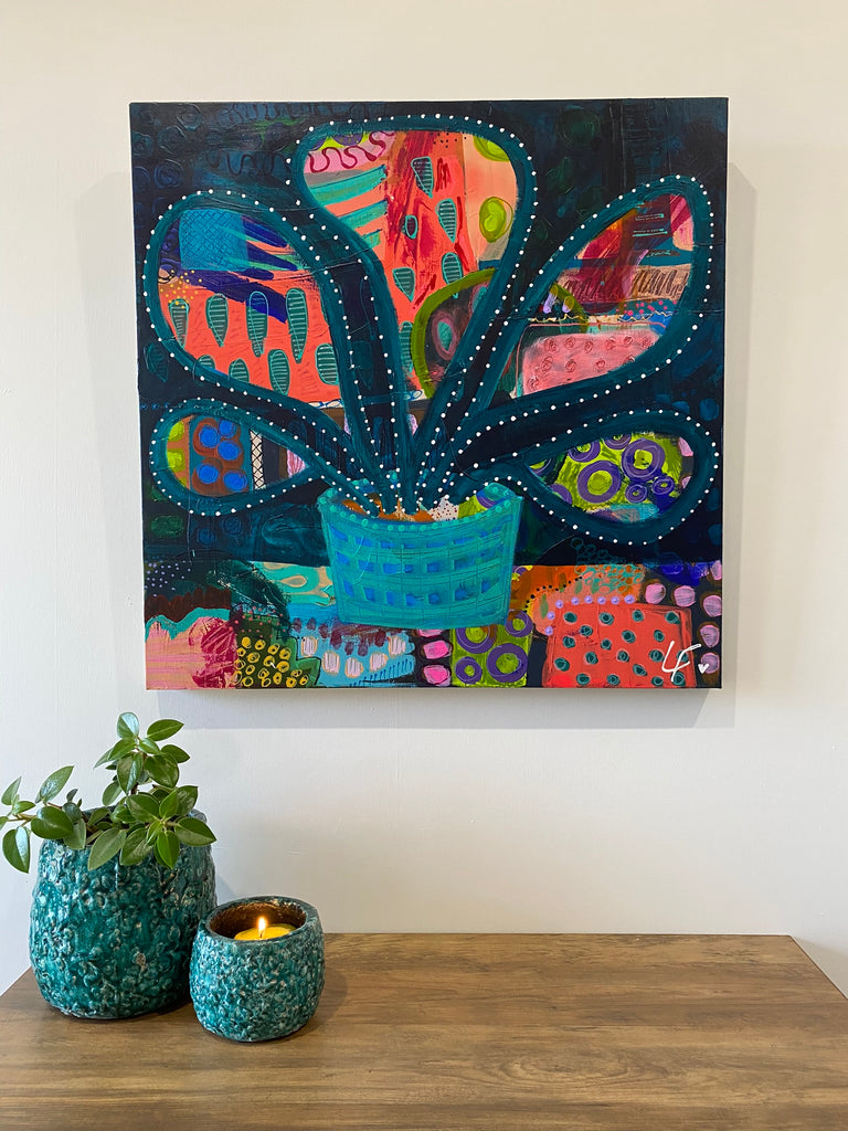 Acrylic and mixed media on canvas. 60cm x 60cm. Unframed.